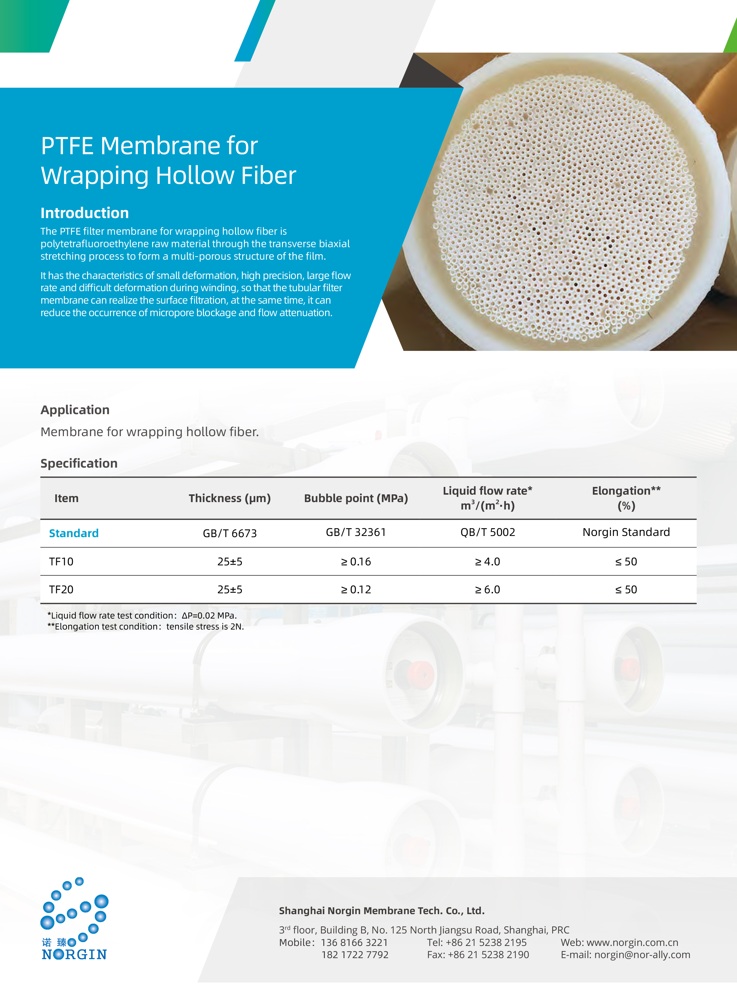 Introduction: The PTFE filter membrane for wrapping hollow fiber is polytetrafluoroethylene raw material through the transverse biaxial stretching process to form a multi-porous structure of the film. It has the characteristics of small deformation, high precision, large flow rate and difficult deformation during winding, so that the tubular filter membrane can realize the surface filtration, at the same time, it can reduce the occurrence of micropore blockage and flow attenuation.